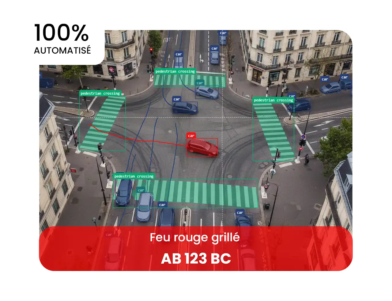 Détectez automatiquement 12 types d’infractions routières en temps réel. Améliorez la sécurité urbaine et renforcez les contrôles sans remplacer vos caméras existantes.